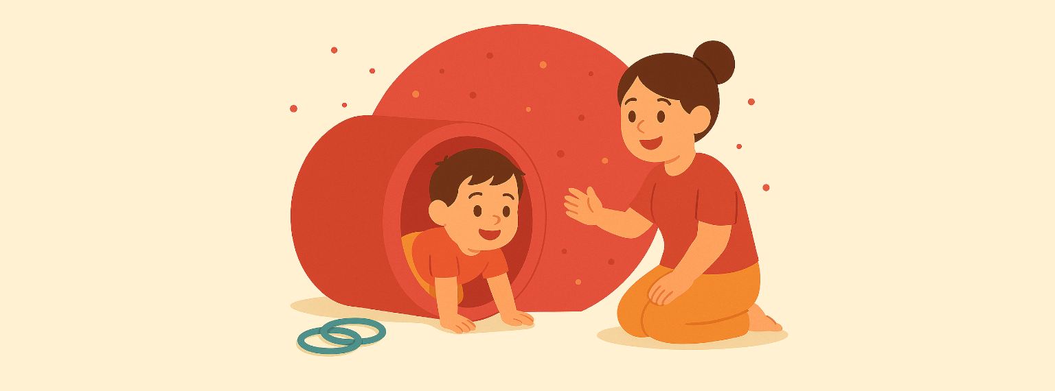 De manière ludique, on apprend à gérer différentes appréhensions en franchissant, glissant, sautant, roulant, tenant...
