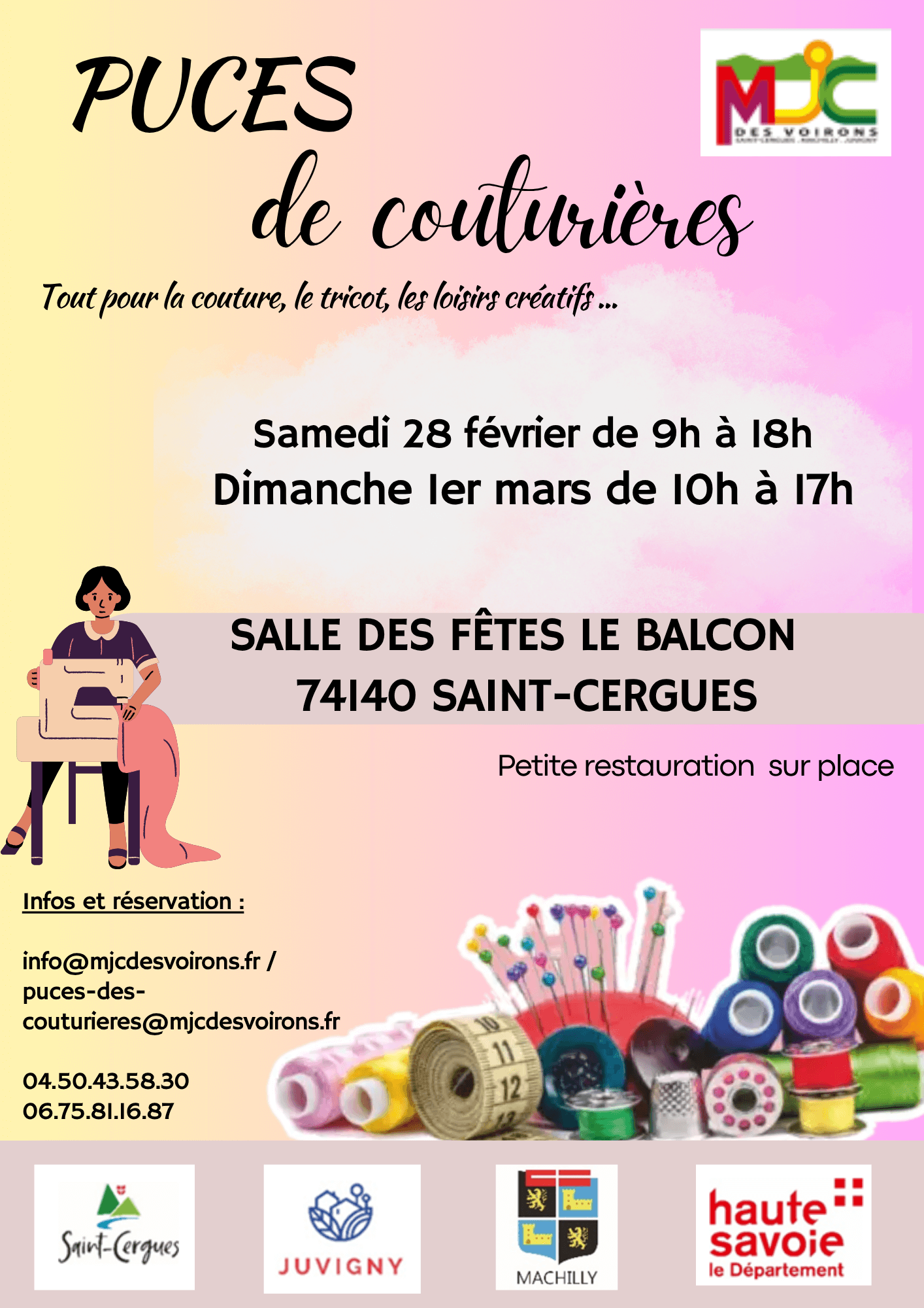 📧 info@mjcdesvoirons.fr 📧 puces-des-couturieres@mjcdesvoirons.fr 📞 04 50 43 58 30 📞 06 75 81 16 87